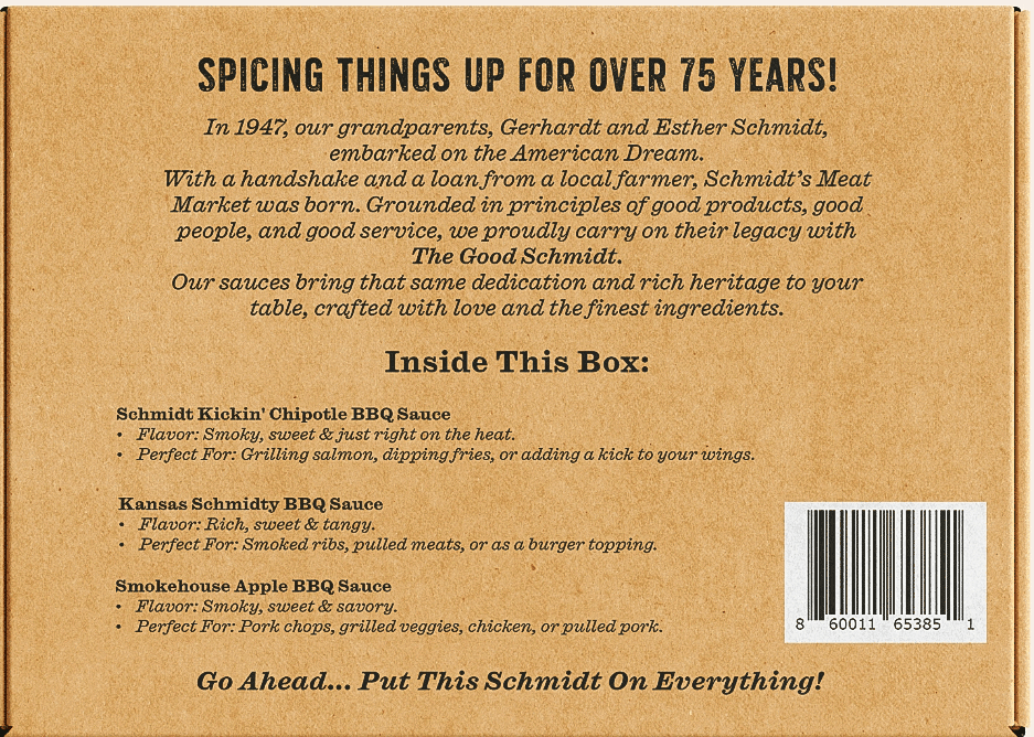 We’re not messing around—this box is packed with sauces so good, you’ll wonder how you ever lived without them. It’s smoky, sweet, tangy perfection in every bottle. Seriously, you need to try this Schmidt!